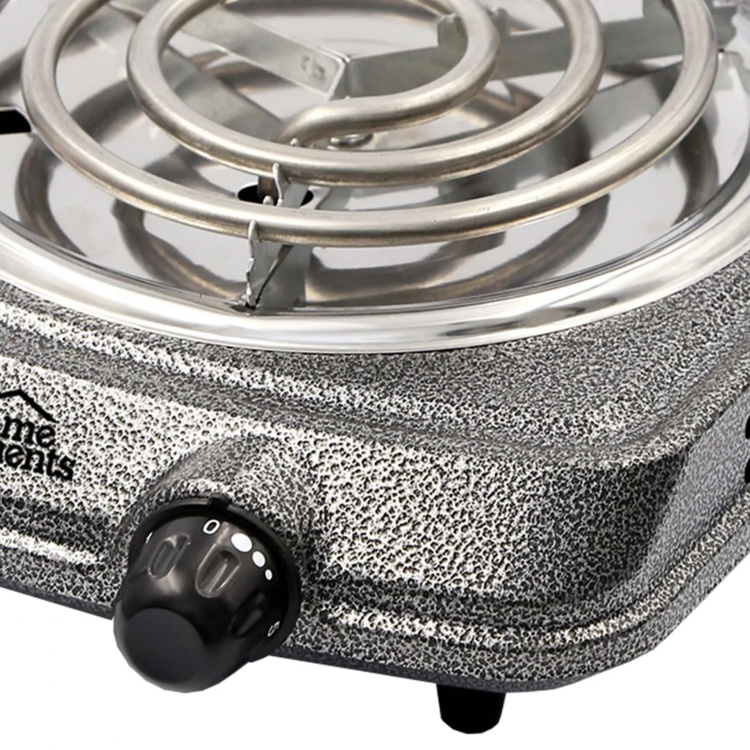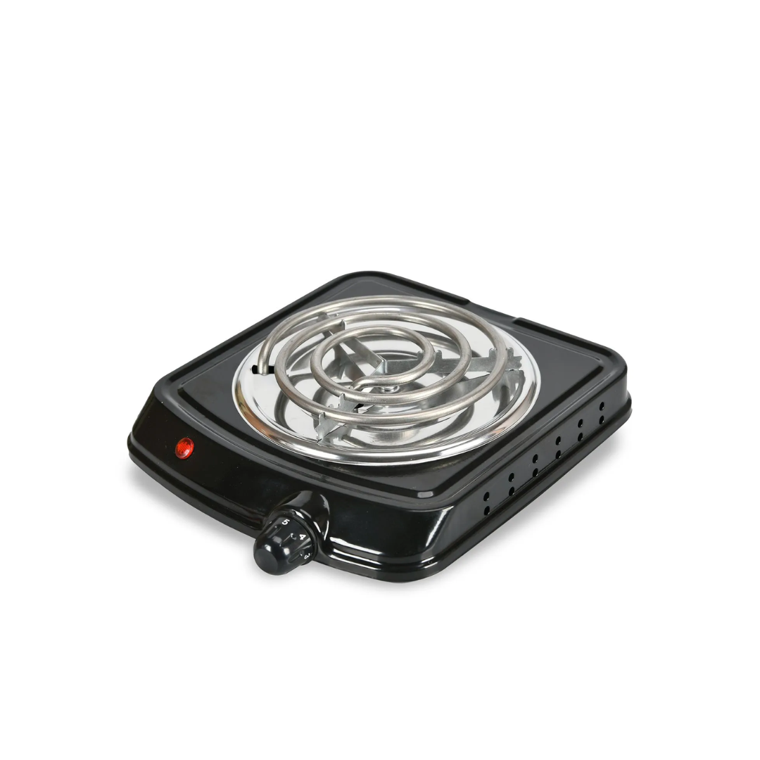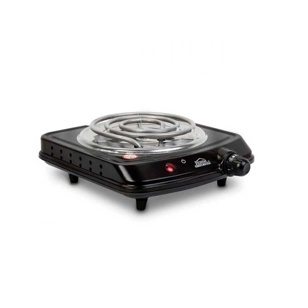 Estufa eléctrica 1 puesto con diseño compacto y materiales livianos, para llevar donde necesites sin ocupar espacio. La estufa eléctrica cuenta con 5 niveles de temperatura que alcanza el calor en poco tiempo: 1 Facilita preparar alimentos delicados a fuego bajo. 2 Prepara a fuego bajo cantidades grandes. 3 Para sellar carne, pollo, pescado. 4 Cocinar a fuego término medio. 5 Cocinar alimentos a fuego alto y rápido. Luz indicadora de encendido y apagado. Control automático con termostato que permite el ahorro en el consumo de energía. Potencia: Gracias a los 1.000 watts de potencia, se pueden realizar preparaciones a fuego bajo, medio o alto. Parrilla Calefactora: Cuenta con parrilla calefactora de 3 anillos y 14 cm de diámetro, que permite mayor uniformidad de la temperatura al preparar los alimentos. Protección sobrecalentamiento: No más preocupación por el deterioro de manteles y superficies. Disipador de calor: Además gracias a su disipador de calor, orificios laterales, se evita sobrecalentamiento y daño en los componentes eléctricos.