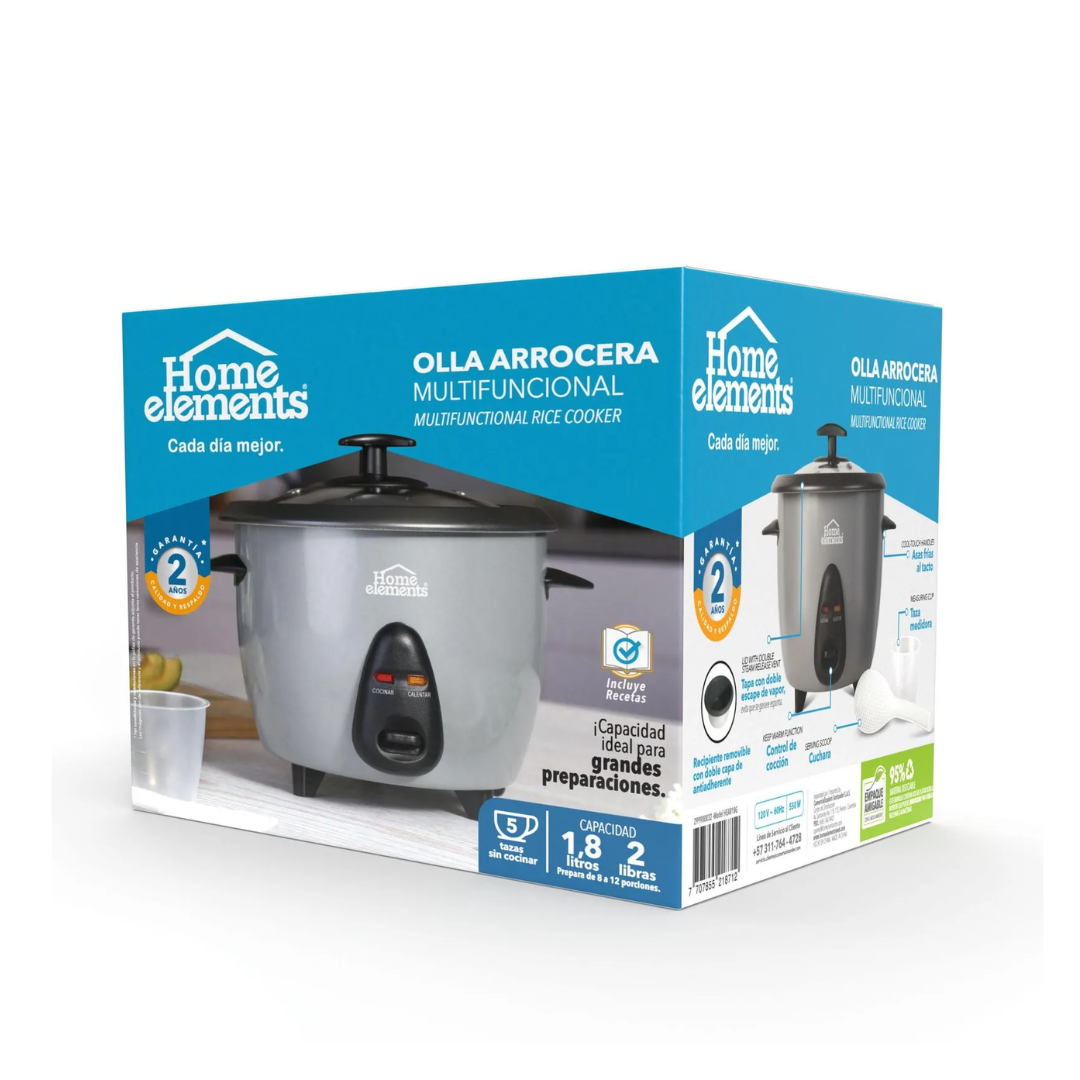 Olla arrocera con capacidad de 1,8 litros. Conserva el calor constante de tus alimentos, para que los disfrutes con la temperatura ideal. Ademas de arroz puedes realizar sopas, postres, salsas, pasta, versatilidad de preparaciones en un solo producto. incluye taza medidora para cocinar la cantidad exacta y cuchara para servir.