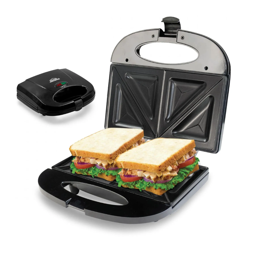 Sanduchera eléctrica Mint, dos puestos con sistema de cierre con seguro. No te enredes, diseño y tamaño ideal para guardarla en cualquier espacio de tu cocina, además cuenta con portacable que facilita su uso. La sanduchera eléctrica cuenta con luces que indican el estado de preparación, luz verde, listo para disfrutar. Su interior tiene dos puestos con placas antiadherentes que evitan que se peguen los alimentos. Despreocúpate, no más alimentos quemados, la sanduchera eléctrica tiene un sistema regulador de temperatura. Combina los ingredientes a tu manera, para un sanduche perfecto, para disfrutar en cualquier momento y en cualquier lugar.